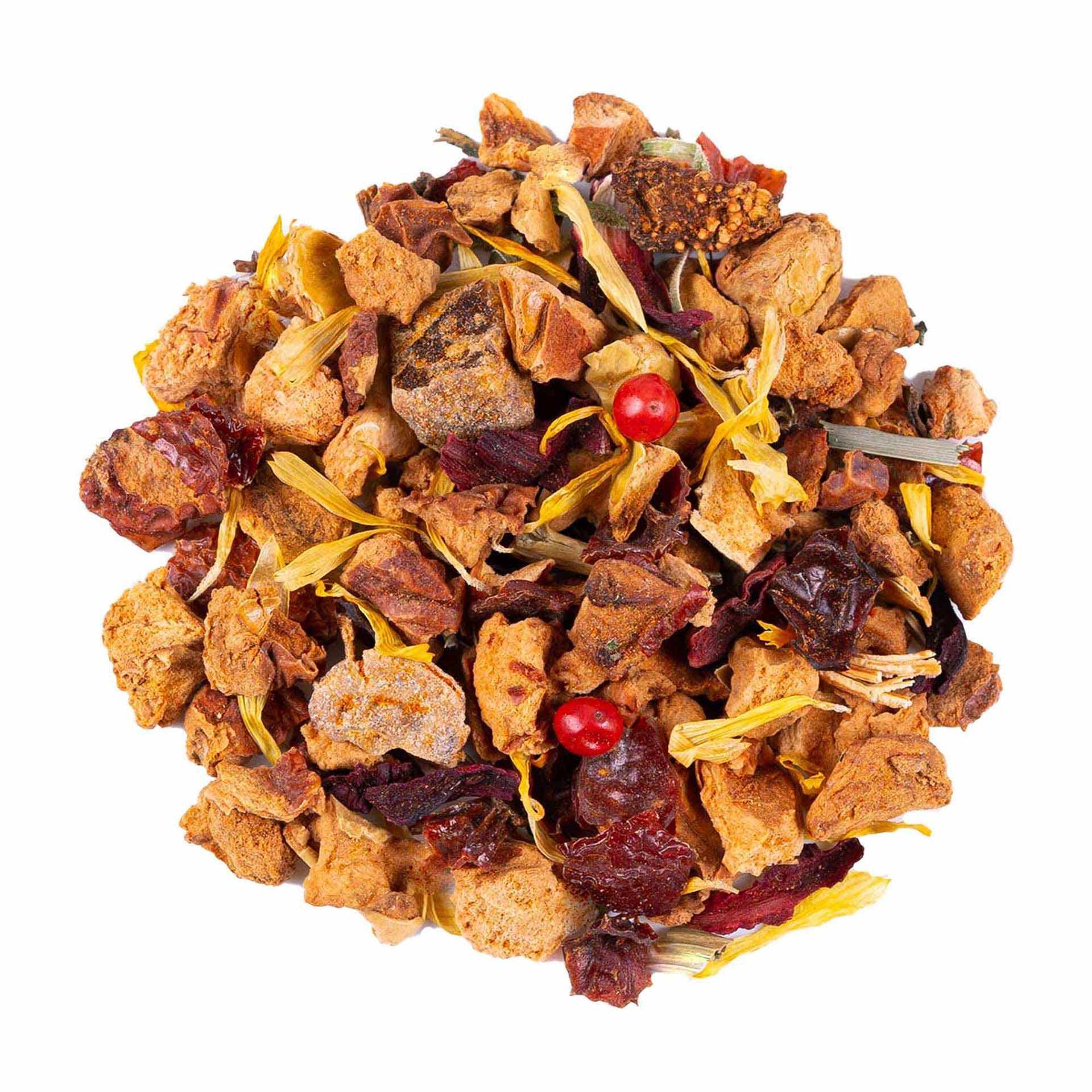 Preparación recomendada: infusionar con agua a 100 °C durante 7–10 minutos (12–15 g/L) para liberar todos los matices frutales y especiados sin amargor, logrando una infusión equilibrada, aromática y deliciosa.