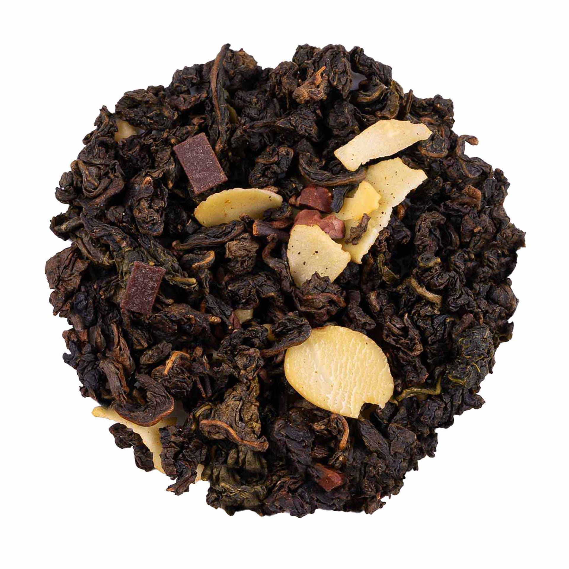 El Té Oolong Almendra Dulce es una mezcla gourmet que fusiona la suavidad del té Oolong de China con el sabor dulce y reconfortante de almendra tostada y chocolate, complementados con trozos de coco, cacao y frutos secos. Este blend aromático ofrece un perfil sensorial rico, redondo y cálido, ideal para quienes buscan una experiencia de té indulgente y diferente.