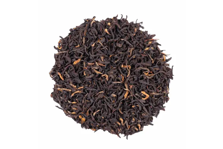 Este té se clasifica como FTGFOP 1 (Finest Tippy Golden Flowery Orange Pekoe, grado 1), lo que indica hojas cuidadosamente seleccionadas con un alto porcentaje de puntas doradas —las partes más tiernas y aromáticas de la planta— que aportan una infusión cobre-clara, maltosa, suave y con dulzor natural.