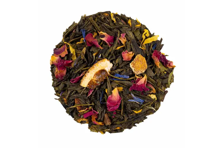 Este blend es ideal para quienes buscan un té verde frutal natural, perfecto para acompañar momentos de descanso, relajación o simplemente para disfrutar de una taza refrescante con carácter.